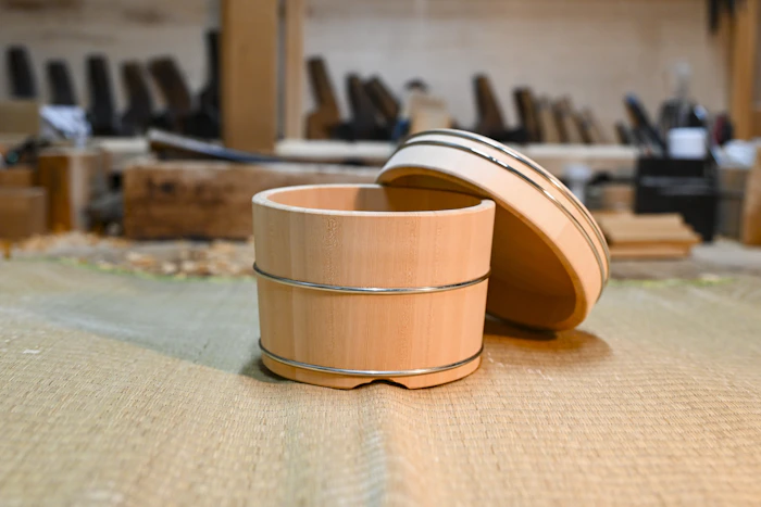 風呂桶、寿司桶、飯櫃など、当時はあらゆるものに木桶が使われていた。桶栄が得意としてきたのは、飯櫃の上に一回り大きな丸い蓋を持つ江戸櫃。数ある木桶のなかで、もっとも技術を必要とされる。